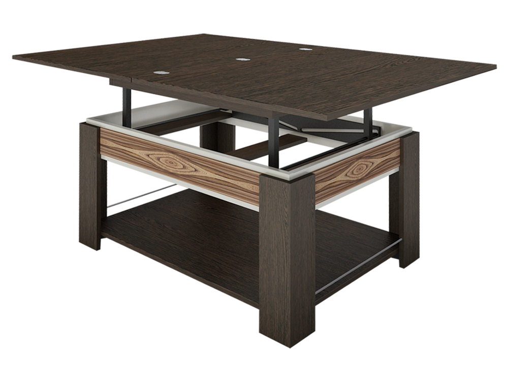 «Агат 24.11» – журнальный стол с механизмом трансформации, позволяющим превращать его в полноценный обеденный. Эффектный рисунок на стекле и контрастные цвета материалов модели, несомненно, украсят любой интерьер.