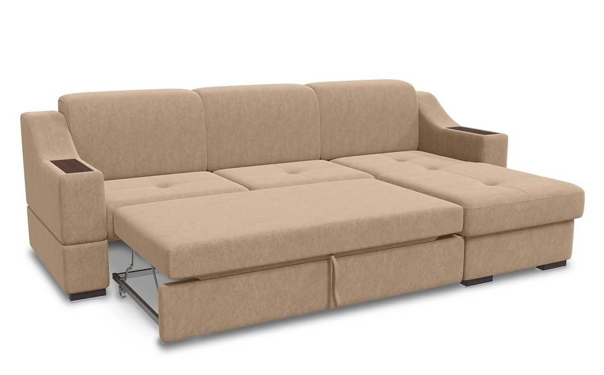 Механизм трансформации – «Дельфин» В основании дивана – ППУ и пружины «змейка» Короб для хранения в модуле оттоманка Угол дивана универсальный.