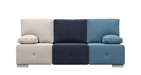 Диван Фанки визуально разделен на три секции. Сочетание однотонной обивки и канта на сидении и подушках, дополненное лаконичными стяжками и хромированными ножками, выглядит незаурядно и стильно.