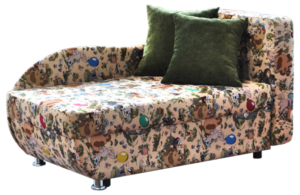 Современный молодежный стиль. Ровное односпальное место. Спальное место сформировано на основе деревянной рамки, на которую уложен эластичный пенополиуретан. В коробчатом основании имеется емкость для хранения спальных принадлежностей. Комплектуется декоративными подушками, наполнителем которых является синтепух.Требуется расстояние при раскладке от стены до боковой опускаемой спинки дивана. Механизм раскладки- "пантограф".