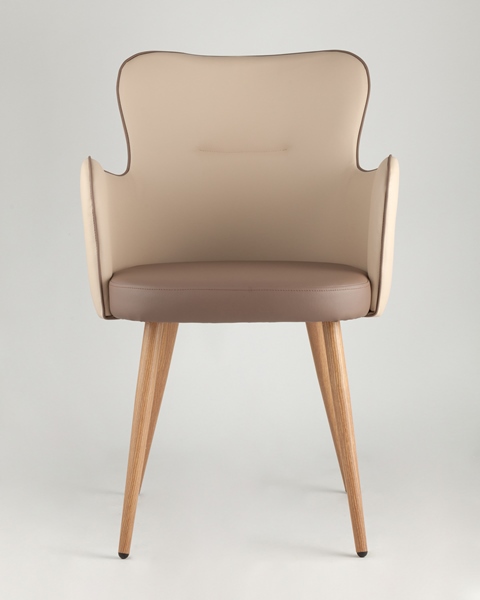 Стильный и мягкий стул Космея имеет широкую эргономичную спинку и удобные подлокотники. Обивкой послужила высококачественная PU кожа. Ножки стальные с принтом под дерево.