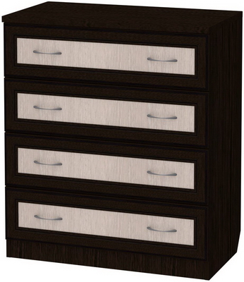 Комод оборудован четырьмя ящичками, дополненными выдвижным механизмом, в которых можно хранить различные вещи. Механизм движения состоит из прочных металлических и пластмассовых элементов, которые способны выдержать не одну сотню закрываний и открываний. Довольно часто такие комоды устанавливают в детских комнатах, поскольку в них очень удобно хранить одежду для детей. Ящички оснащены металлическими ручками удобной формы и дополнительным декоративным украшением в форме правильного четырехугольника, которое подчеркивает строгую красоту и изысканность этого предмета мебели. Внутреннее пространство выдвижных ящичков довольно большое, что позволяет хранить даже постельные принадлежности, благодаря чему комоды нередко располагают в спальных комнатах.