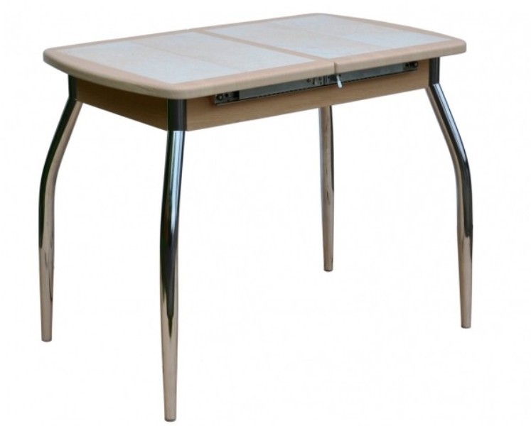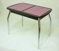 Новый раздвижной стол с керамической плиткой. Произведен по итальянской технологии. Раздвигается с помощью удобного механизма "бабочка". Хромированное подстолье зрительно делает этот стол более легким и привлекательным.